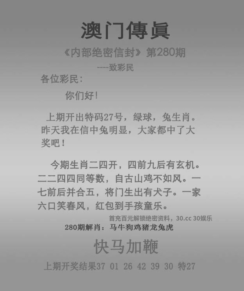 280期:三头中特✳️0头-3头-4头✳️开:鼠42中 |