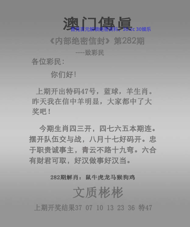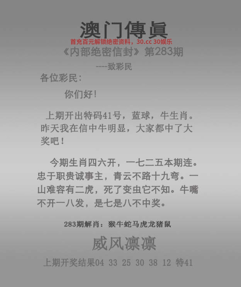 282期:绝杀✴️06.17.18.22.30.34✴️开:牛41中 |